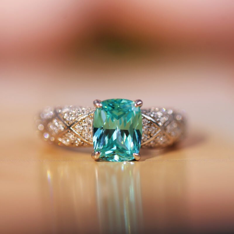 Cushion Cut Lab-Created Paraiba Ring with Full Zirconia Band - Rhodium Plated Sterling Silver