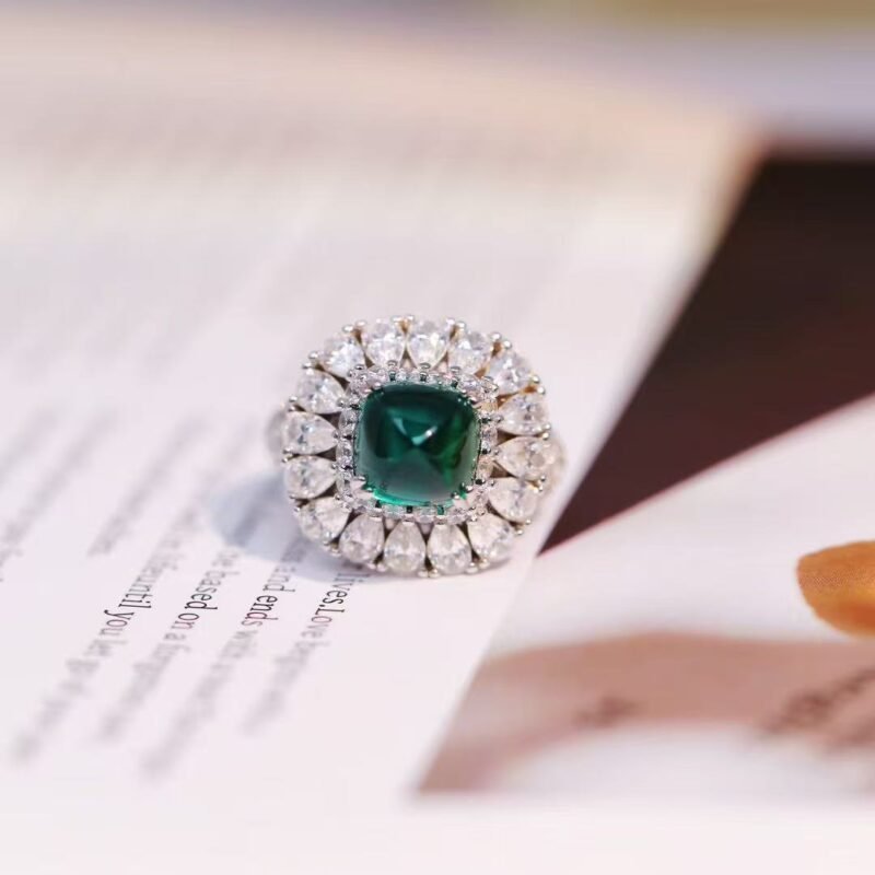 Emerald cluster ring Gift for Wedding/Birthday/Mother’s Day/Christmas