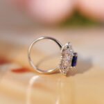 Be the first to review “Oval Lab-Grown Sapphire Ring with Triple Zirconia Circles – Rhodium Plated Sterling Silver” Cancel reply